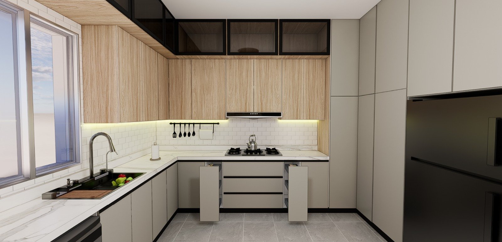 - زيادة مساحة التخزين: التفصيل بطريقة جيدة يسهل تنظيم أدوات المطبخ والأطباق والأواني ويقلل الفوضى بطريقة زينة مرة.